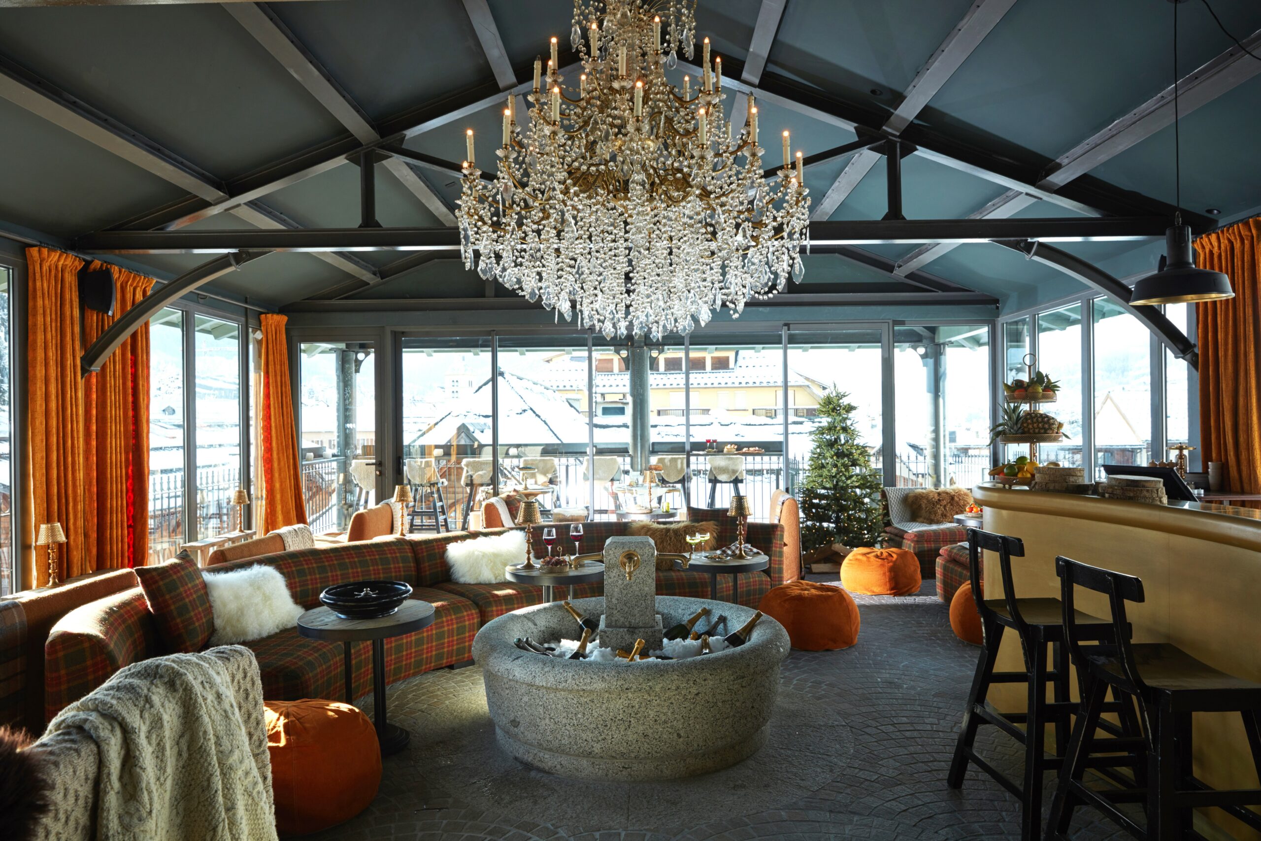 Perché au dernier étage du Grand Hôtel du Soleil d’Or, notre Rooftop Bar & Restaurant vous invite à profiter en toute liberté d’une vue panoramique exceptionnelle sur Megève et les montagnes environnantes.